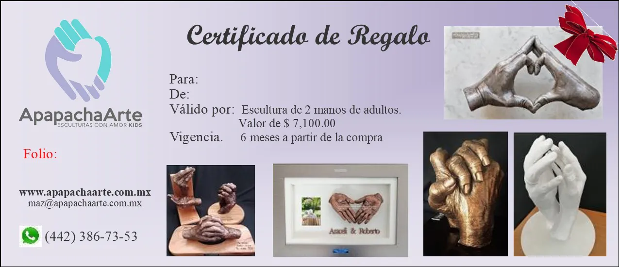 Certificado de regalo de escultura de 2 manos de adultos